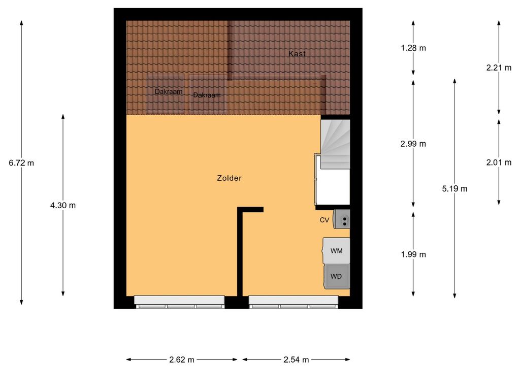 De tweede verdieping is mede door de dakopbouw een mooie toevoeging aan de woning. Op dit moment wordt deze ruimte als thuiswerkplek gebruikt maar met een kleine ingreep kan je hier een extra slaapkamer realiseren. Ook is hier een wasruimte aanwezig met de wasmachine- wasdrogeropstelling en de cv-ketel (bj 2024) hangt hier. Ook is er een airco unit aanwezig voor verwarming en koeling. Het Velux dakkapel maakt deze ruimte helemaal af.
